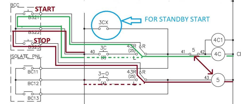 As previously mentioned, the error is in the NO/NC contact configuration. The challenge arises from the drawing being incorrect, which makes it hard to identify and correct errors easily if the wiring is incorrect externally. This situation is similar to what was experienced in the past with a different vessel. That vessel, which was eight years old, had an issue where pressing the starboard side emergency stop of the sludge pump would cause the No.1 Main Air Compressor to stop due to low pressure trips. The drawing was correct, but external wiring issues were discovered. The error was identified by checking the panel and verifying the wiring.