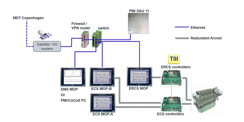 Cylinder unit အသီးသီးက sensor တွေက တိုင်းလို့ရတာ၊ Tacho system က ပေးပို့တဲ့ crank shaft angle position ၊ Engine RPM sensor စတာတွေကို DAU – Data Acquisition Unit က ရယူပါတယ်။ DAU ကတဆင့် PMI computer ကို LAN နဲ့ ပို့ပေးတာ ဖြစ်ပါတယ်။