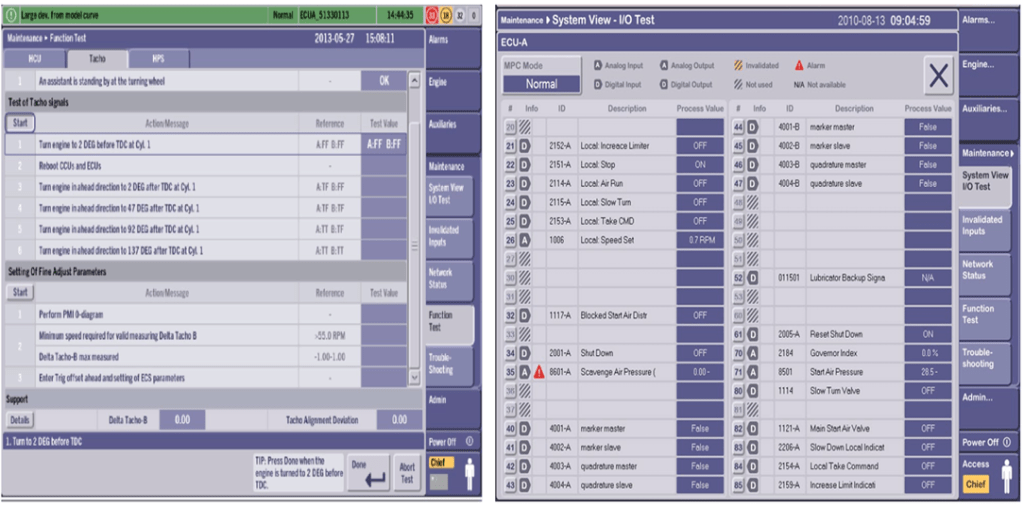 In the previous sections, we discussed the MPC, Hydraulic Power Supply (HPS) Unit, and Hydraulic Cylinder Unit. The MPC units handle control and monitoring based on their respective functions, the HPS provides the necessary hydraulic oil pressure for control functions, and the HCUs manage exhaust valve operation, fuel injection, and cylinder lubrication. To perform these functions, it is essential to know the crankshaft position, and this is the responsibility of the Tacho system.