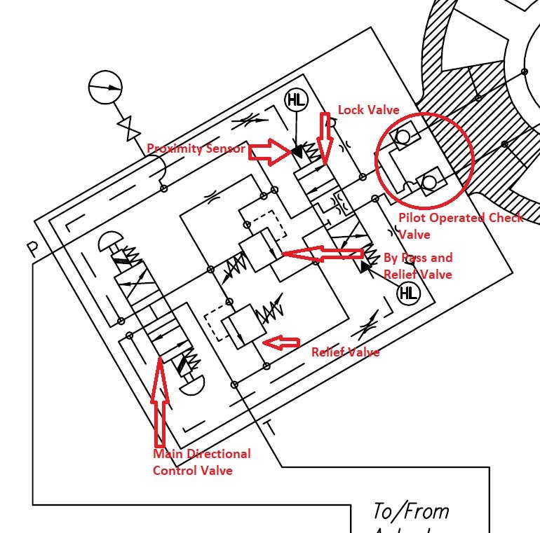 Lock Valve ရဲ့ Center Position က Regenerative Valve Position လို ဖြစ်နေတာ သတိထားမိပါတယ်။ ပုံမှန် ဒီလို Valve position မျိုးကို Hydraulic cylinder တွေ Extension လုပ်တဲ့အခါ ပုံမှန်ထက် မြန်အောင် Return oil တွေကို Tank ထဲ ပြန်မလာစေတော့ဘဲ Supply Line ထဲ တန်းထည့်တာမျိုးမှာ ကျွန်တော် မြင်ဖူးပါတယ်။