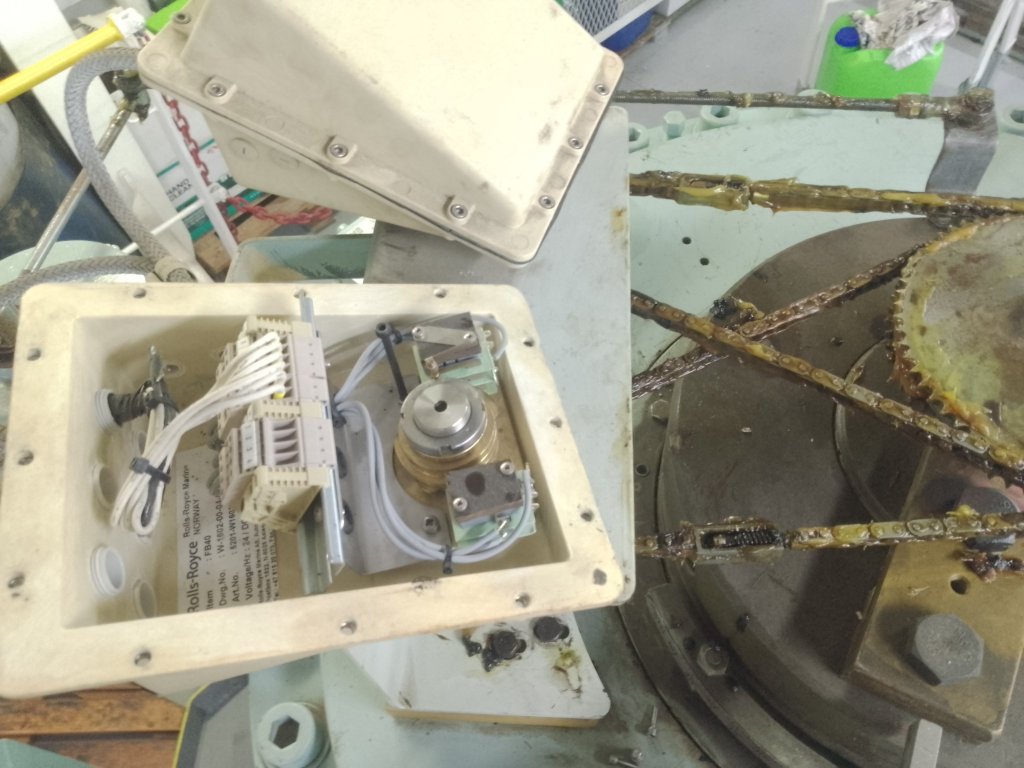 Feedback Unit မှာ Steering Control နဲ့ Rudder Angel Indicator တို့အတွက် Feedback potentiometer နဲ့ Rudder Limit Switch တို့ ပါရှိပါတယ်။ Limit Switch တွေက Steering Gear တွေမှာ တွေ့မြင်နေကျ ပုံစံမျိုး မဟုတ်ဘဲ Cam Shaft ပေါ်မှာ ထိုင်ထားတဲ့ Micro Switch လေးတွေပါ။ Steering Gear Movement ကို Cam shaft က ချိန်းကြိုးတွေကနေ တဆင့် ယူပြီး Micro Switch လေးတွေနဲ့ ထောက်ထားတာတွေ့ရပါတယ်။ Manual book မှာတော့ Micro Switch လေးတွေနဲ့အတူ Feedback Potentiometer ထိုင်ထားတဲ့ Drawing တွေ့ရပေမယ့် ကျွန်တော် ဖွင့်ကြည့်တော့ Micro Switch သပ်သပ်ပဲ တွေ့ရပါတယ်။