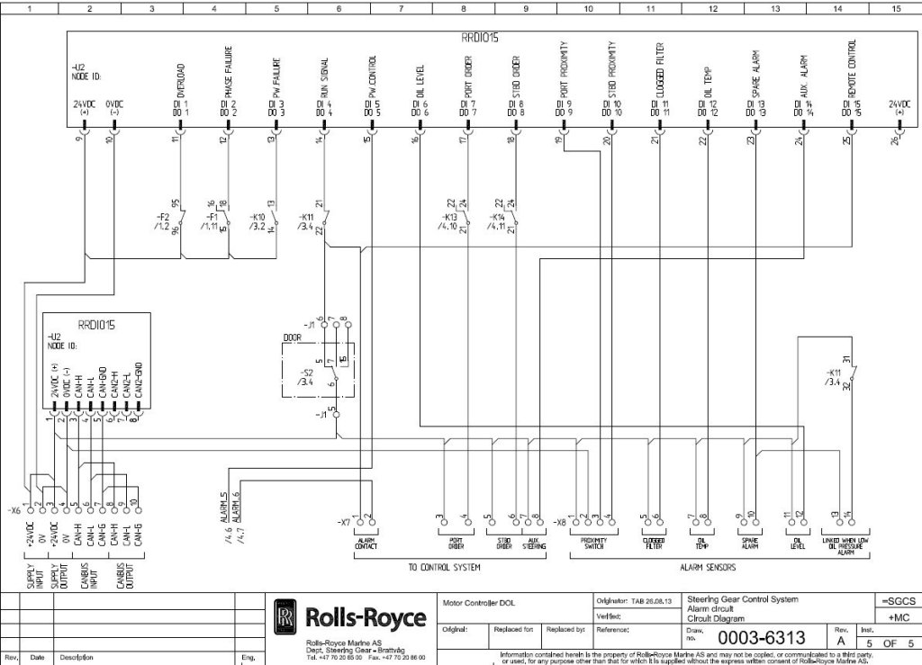 Motor Controller မှာ ရှိတဲ့ Alarm interface card ကနေ ECR နဲ့ Bridge မှာ ရှိတဲ့ Alarm indication panel တွေဆို Alarm signal တွေကို CAN network နဲ့ ပို့ပေးပါတယ်။